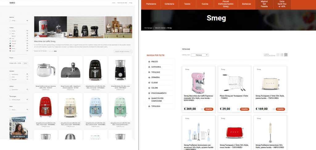 È stato pensato e realizzato anche un rich content: una landing page posizionata all’interno della pagina prodotto che desse informazioni aggiuntive al cliente finale circa le modalità di utilizzo di un modello di tostapane SMEG – ricreando uno slider che mostrasse il pannello di comandi dell’elettrodomestico.