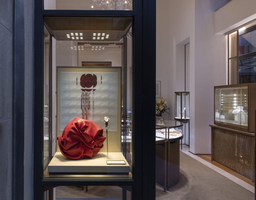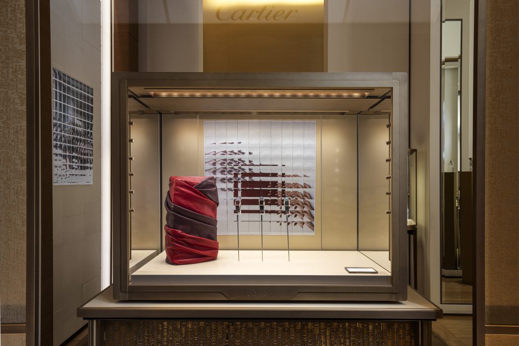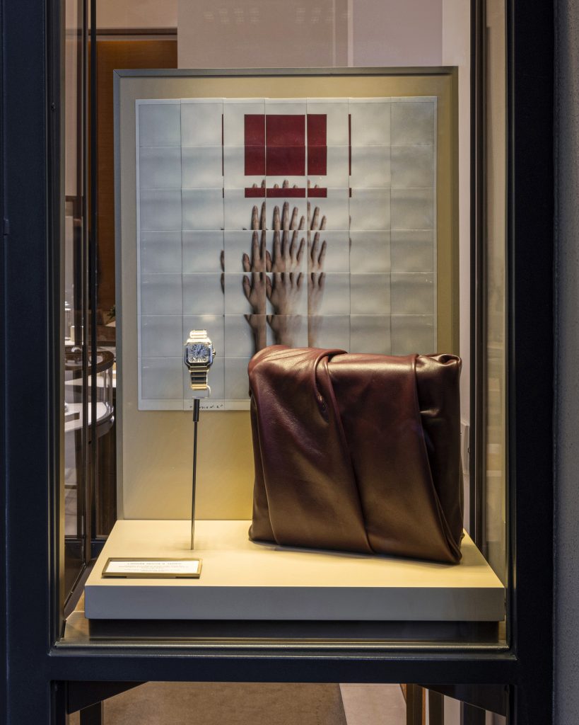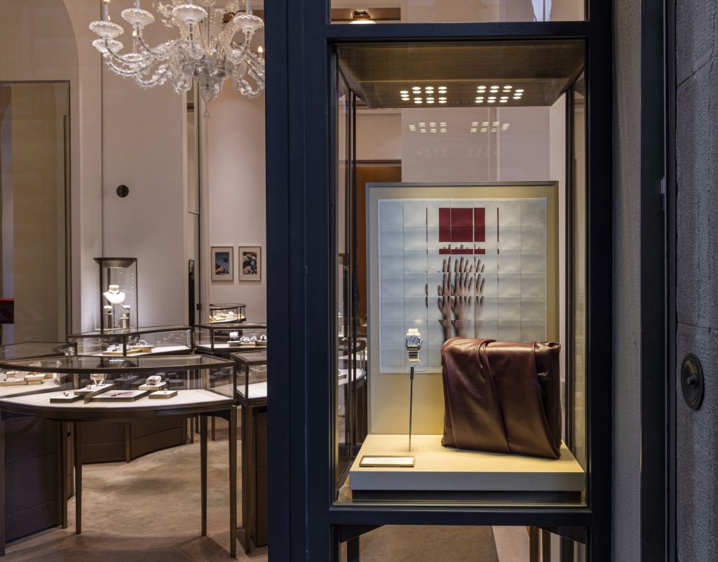 The mosaics were displayed in the elegant windows of the Cartier store on Via Tornabuoni during Pitti Uomo in January 2024.